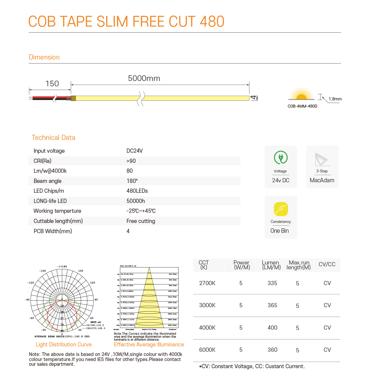 COB TAPE SLIM FREE CUT 480