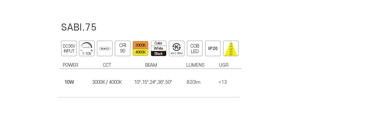 BEAM ANGLE : 10°/15°/24°/36°/50°