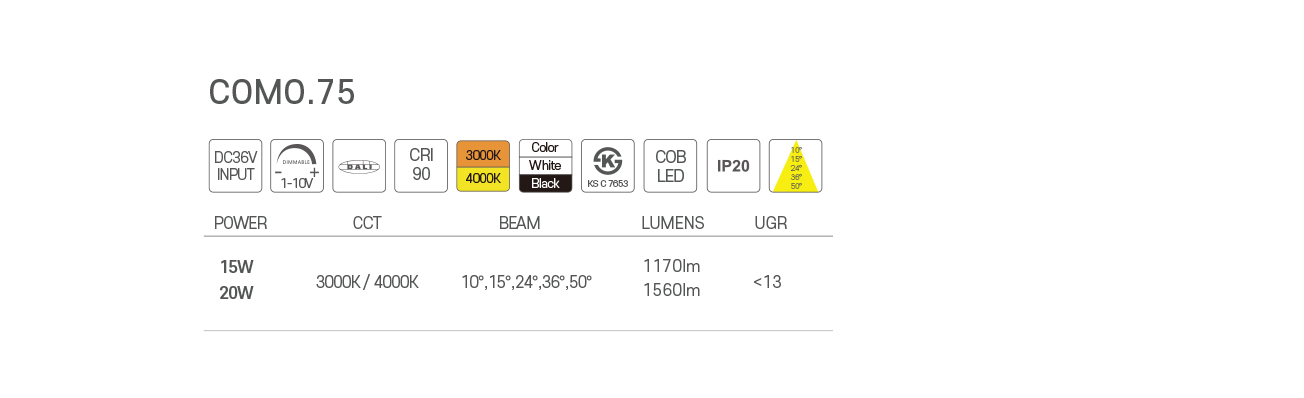 BEAM ANGLE : 10°/15°/24°/36°/50°